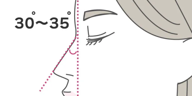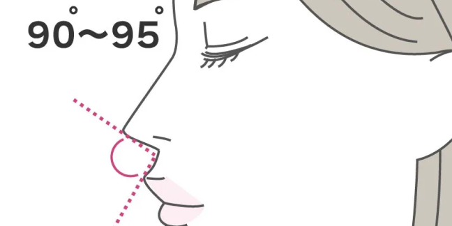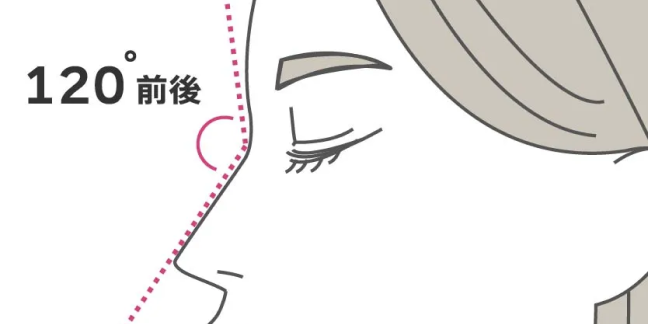 横顔で鼻の先端から付け根までの線と鼻の付け根から上唇までを結んだ線の交わる角度