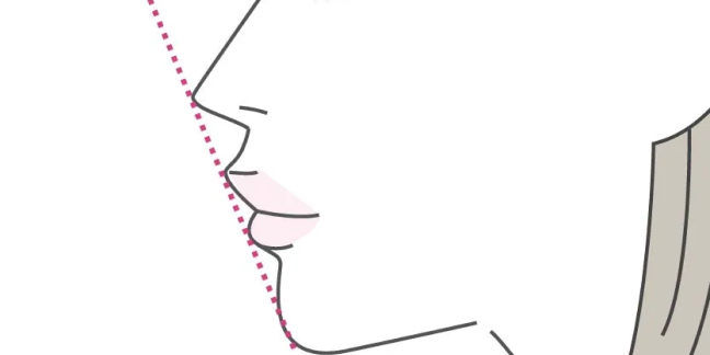 横顔で、鼻の先端と顎の先を結んだ線に、上下の唇が接しているか、やや後方にあるのが望ましい