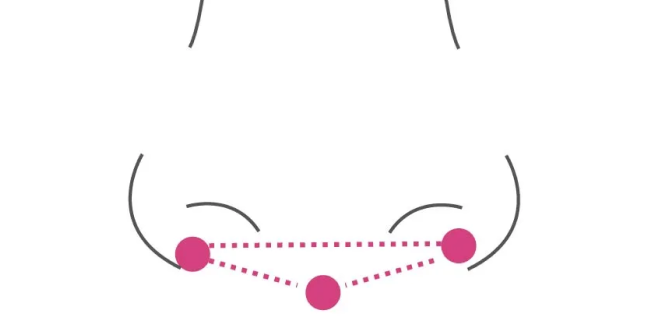 鼻の穴の両端と鼻の付け根を結んだ三角形の頂点が下向きであることが望ましい