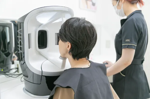 正確な肌状態を把握するため、メイクは落としたうえで撮影を行います。
