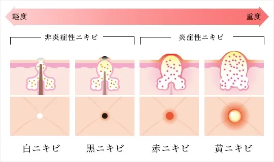 ひとえに「ニキビ」といっても、思春期にできるニキビ、大人になってからできるニキビ、白ニキビや黒ニキビなど数種類あり、その原因と対処法も異なります。それぞれの特徴を知り、正しい効果的な治療をしましょう。