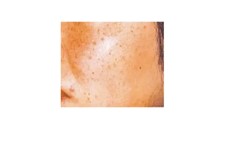 1mm~数mm大の斑点状のシミ。両頬~目の下、鼻の周りに散らばるようにできる。