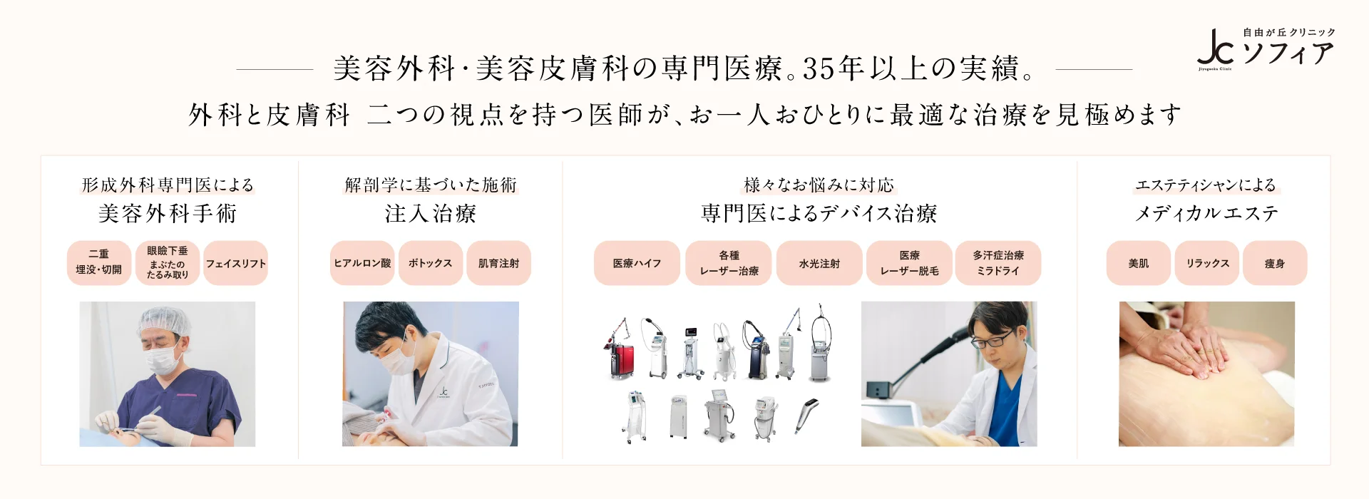 自由が丘クリニックソフィアは、美しくありたいと願うすべての方に寄り添い、確かな技術と経験に基づいた美容医療をご提供しています。